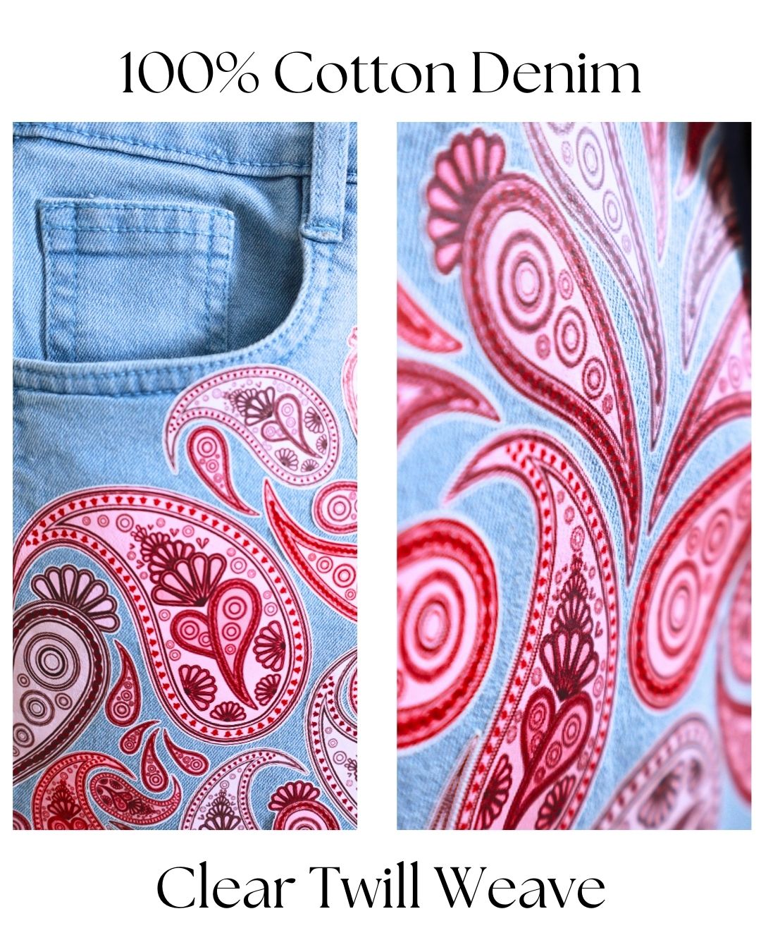 At Kaldenims, quality isn't just a standard — it's our signature. Each piece is crafted from premium-grade, 100% cotton denim that offer the perfect balance between comfort and structure. Our printed denim stands out for its vibrant, fade-resistant DTF (Direct-to-Film) designs, heat-pressed with precision to ensure long-lasting wear. We source durable midweight denim (12 oz) ideal for everyday use — strong enough to hold its shape, yet soft enough to move with you. All our garments undergo rigorous quality checks for stitching, dye, and design consistency, ensuring that you get only the best in every pair of jeans, shorts, or jacket.