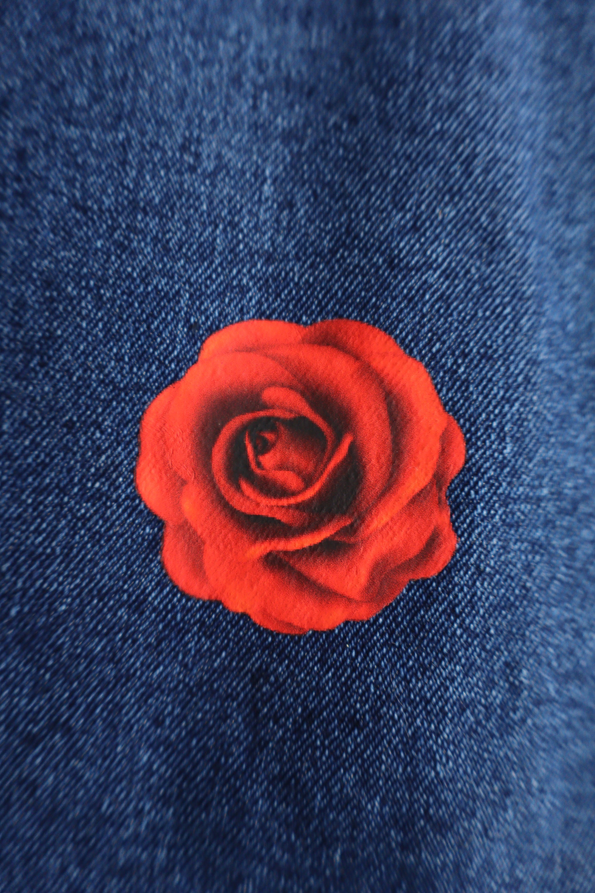 Bold Red Rose Prints – Hand-pressed floral detailing for a romantic yet edgy vibe